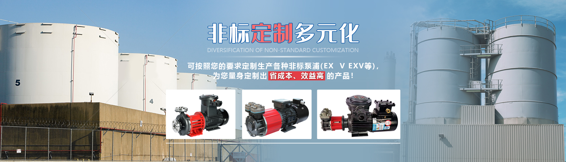 查看詳情可根據(jù)您的工藝需求定制特殊電壓(V)、頻率(HZ)、防爆(EX)、防爆(EX)+變頻(V)等特殊產(chǎn)品,批量個(gè)性化定制開發(fā)等,給您提升效率,降低成本。不斷追求技術(shù)創(chuàng)新、得到更多企業(yè)認(rèn)可。公司產(chǎn)品包括旋渦磁力泵、輕型離心磁力泵、化工離心磁力泵、襯氟磁力泵、精密旋渦泵、大流量離心泵、小型高壓葉片泵、不銹鋼多級(jí)泵、立式管道泵等;產(chǎn)品耐溫范圍從低溫-196℃到高溫+400℃,涉及化工、環(huán)保、印染、醫(yī)藥、半導(dǎo)體、新能源、汽車、電子、軍工、食品、石油和通用機(jī)械等行業(yè)領(lǐng)域。